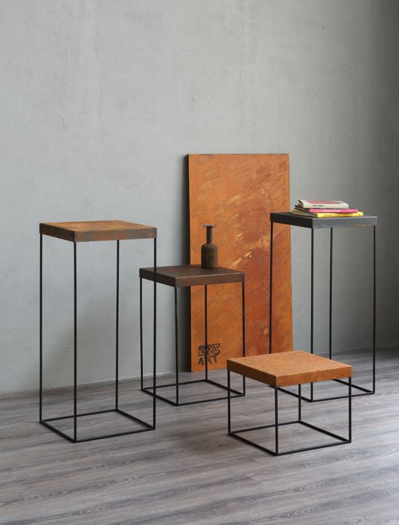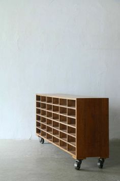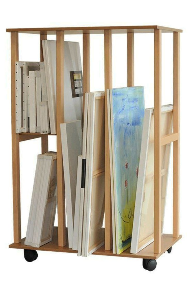 Мобильный стеллаж из дерева или металла с наклонными полками