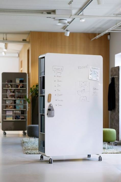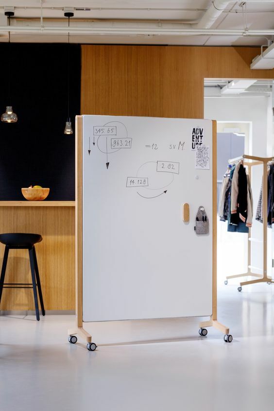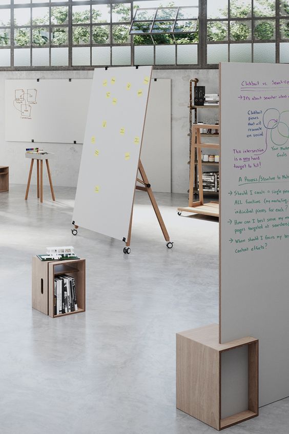 Обустройство мест для командной работы нуждается в мебели на колесах: больших и удобных столах, досках для записей и стеллажах для хранения канцелярии, книг, материалов