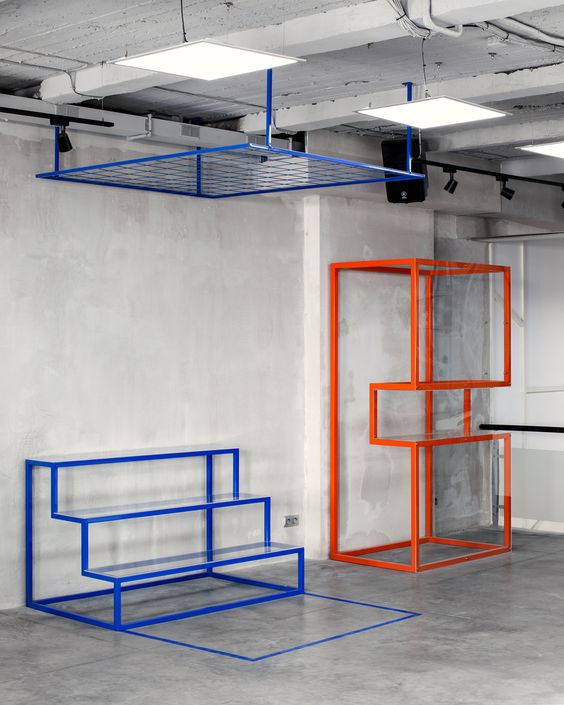 Коридоры и холлы являются прекрасными местами для выставки проектов или продуктов компании, коротких встреч и пауз, поэтому здесь уместны выставочные конструкции и террасированные подставки под интерьерную зелень